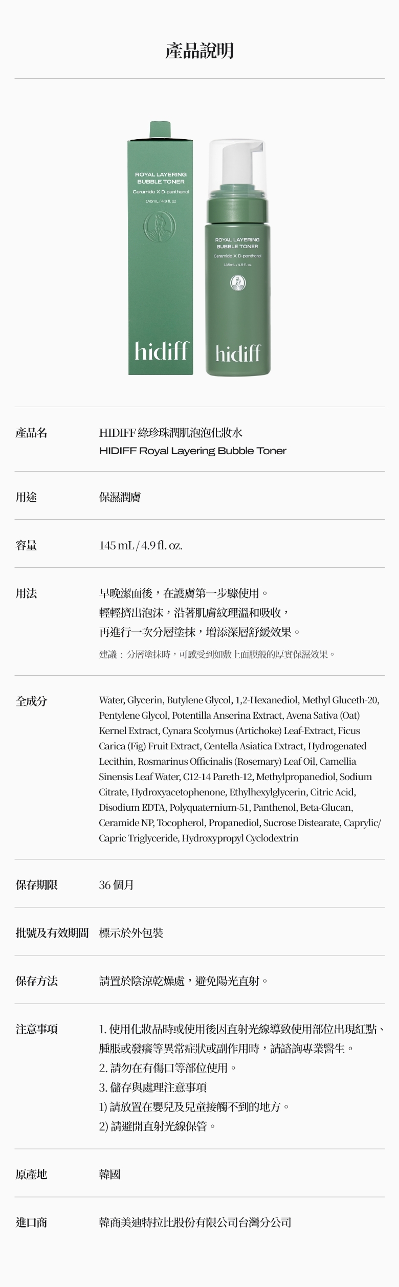 綠珍珠潤肌泡泡化妝水: 145ml