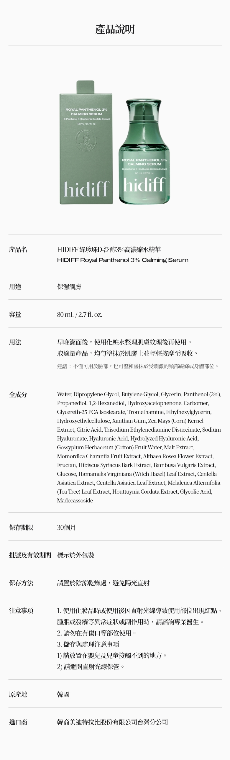 綠珍珠D-泛醇3%高濃縮水精華: 80ml